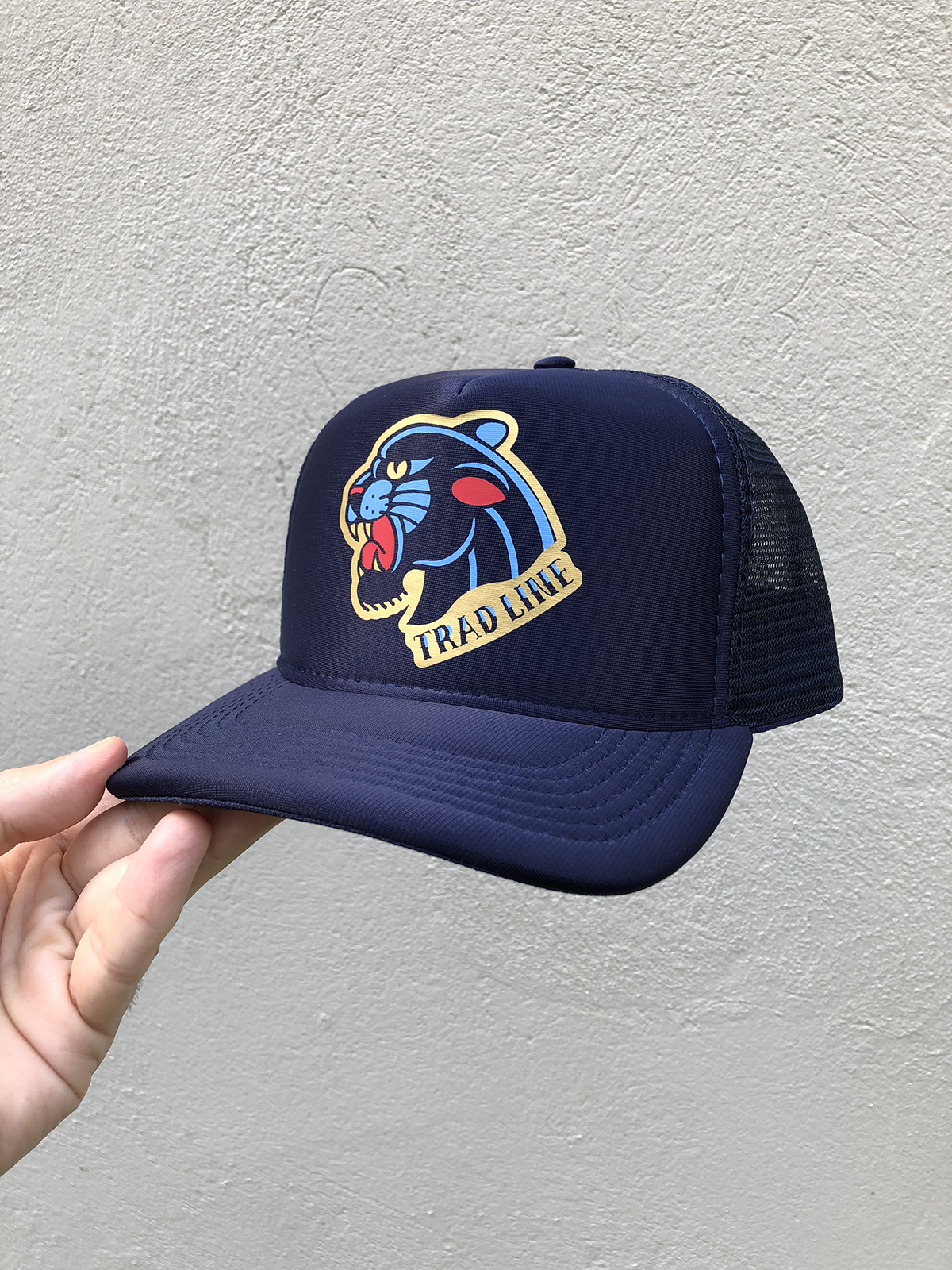 Boné estilo Trucker com desenhos de tatuagens no estilo Old School.