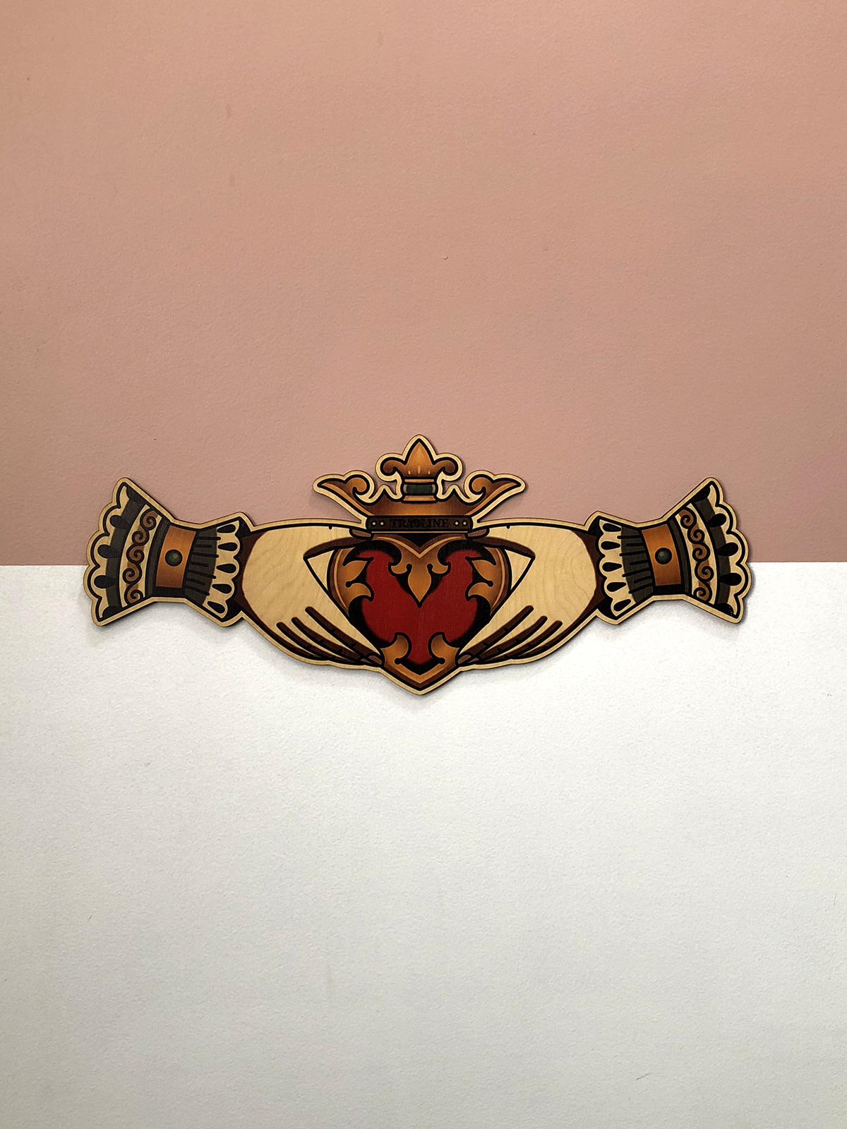 Peça decorativa inspirada em desenhos de tatuagens tradicionais, Anel Claddagh ao estilo Old School.
