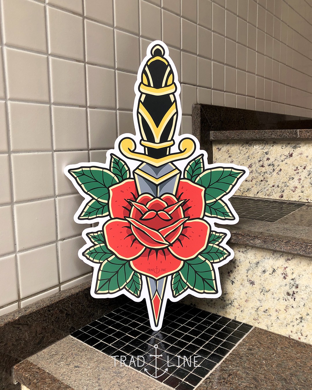 Quadro decorativo inspirado em desenhos de tatuagens tradicionais. Estilo Old School.