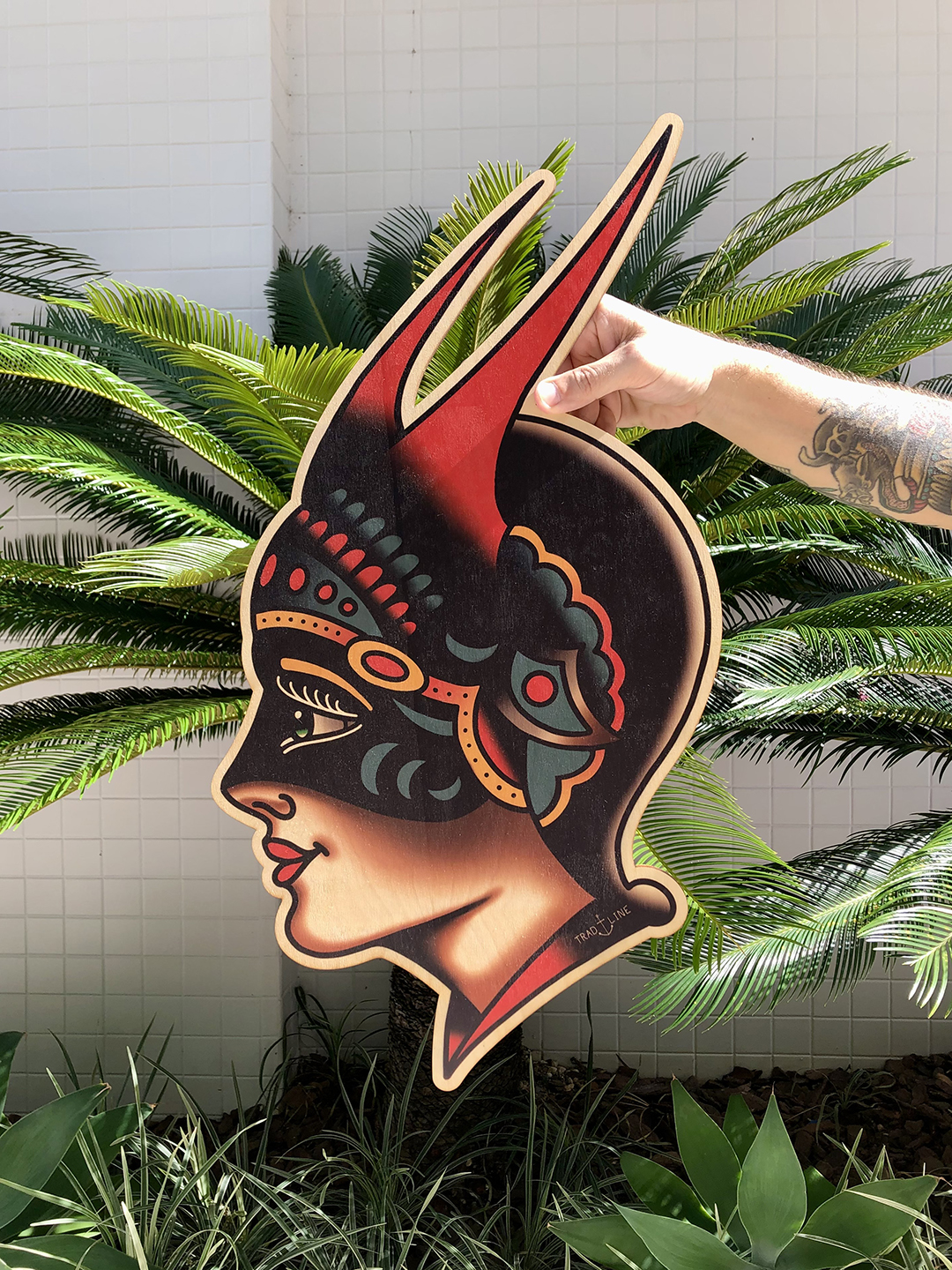 Peça decorativa inspirada nos desenhos de tatuagens tradicionais do artista Amund Dietzel.
