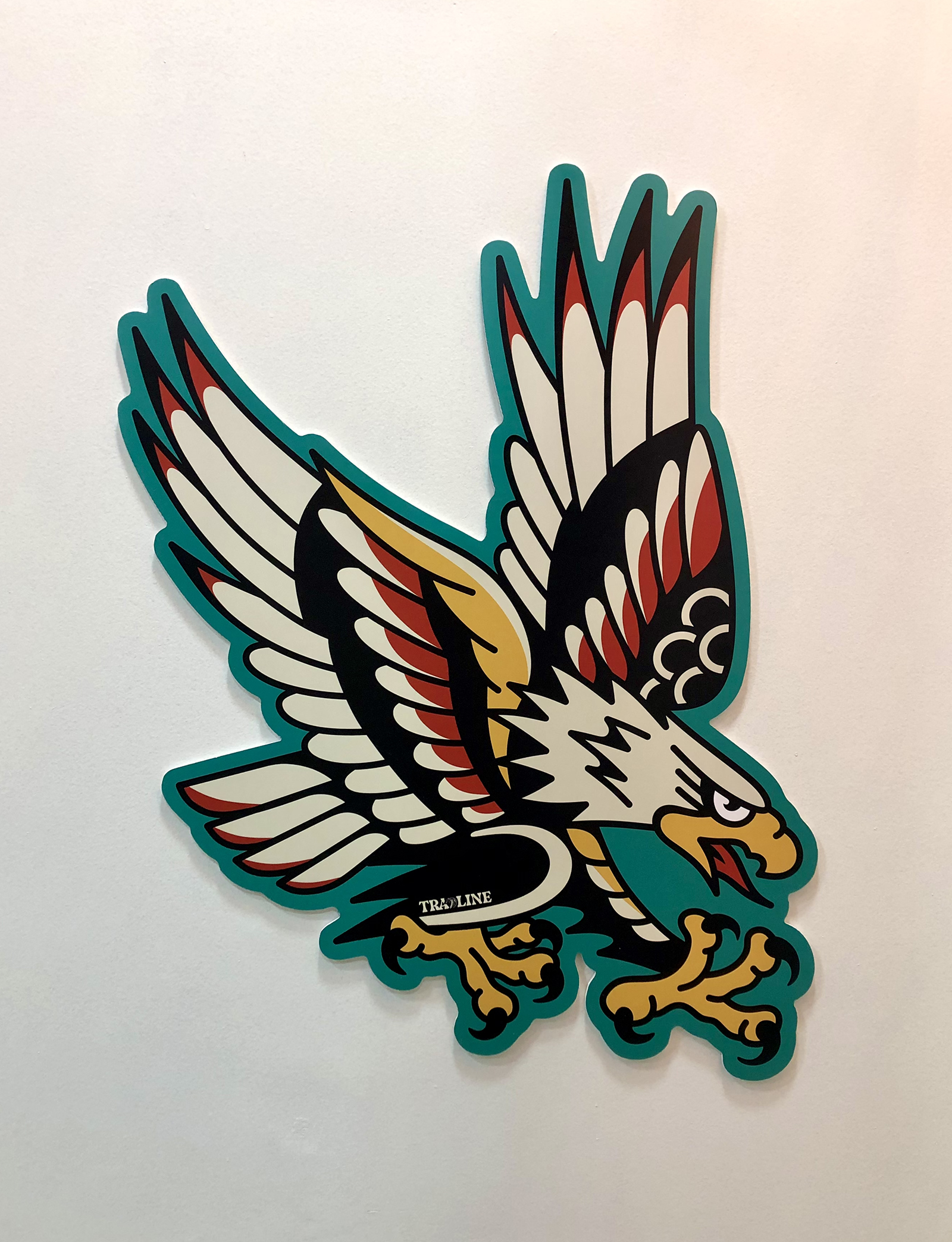 Peça decorativa inspirada em desenhos de tatuagens tradicionais. Águia americana ao estilo Old School.