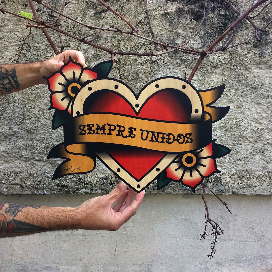 Quadro decorativo inspirado em desenhos de tatuagens tradicionais - Estilo Old School.