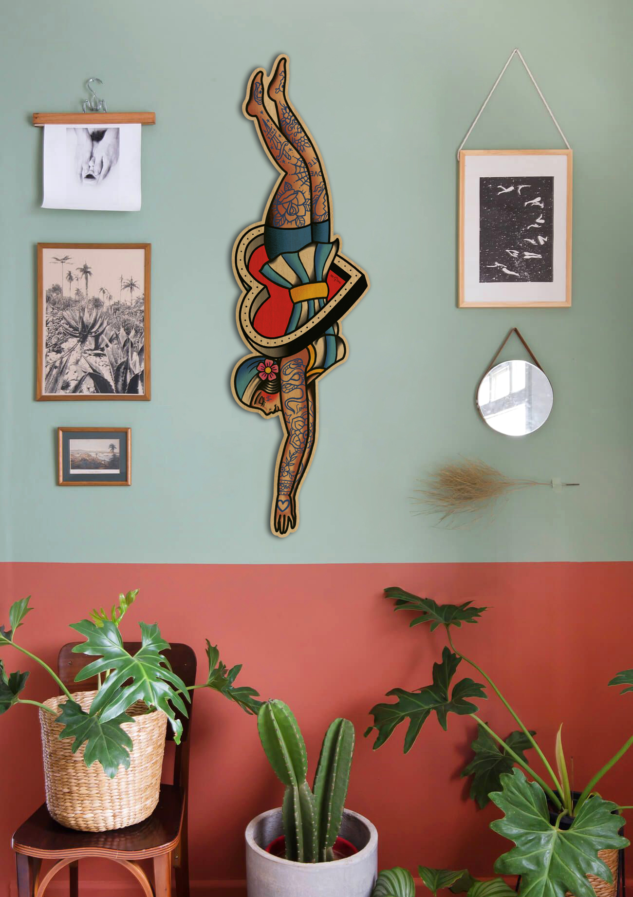 Peça decorativa inspirada nos desenhos de tatuagens tradicionais - Mergulhadora.