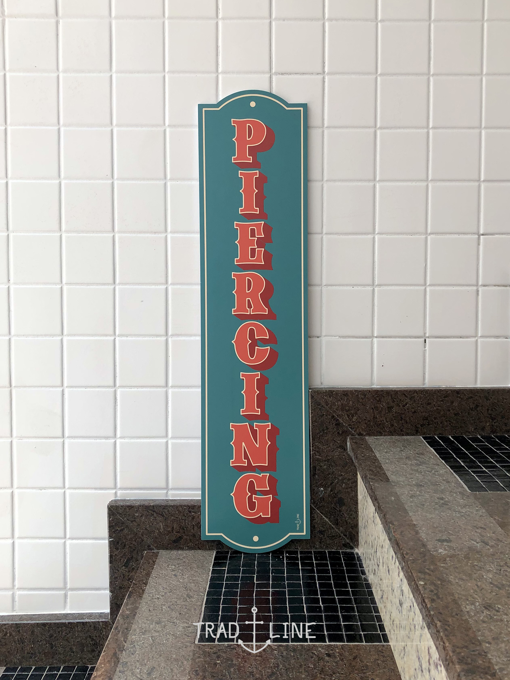 Placa decorativa inspirada em tipografias de estúdios de tatuagem.