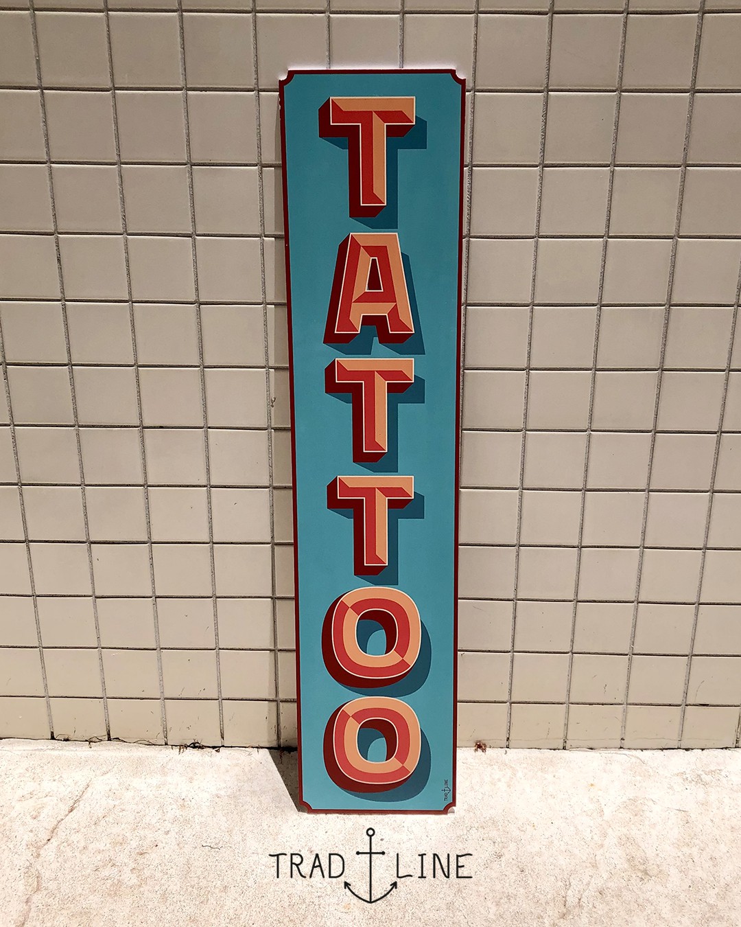 Placa decorativa inspirada em tipografias de estúdios de tatuagem.