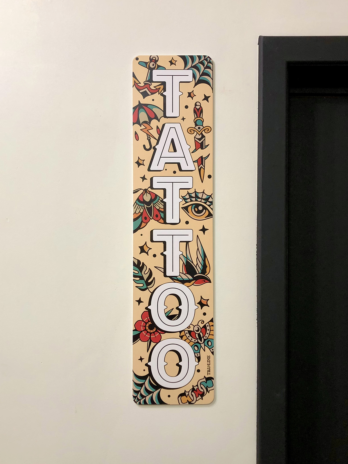 Placa informativa/decorativa TATTOO inspirada em tipografias de estúdios de tatuagem.