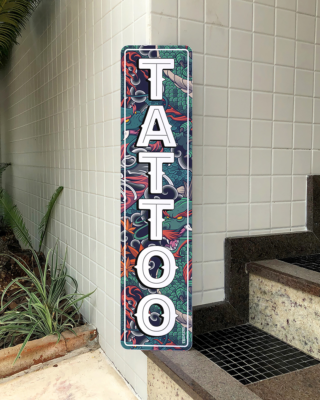 Placa informativa/decorativa inspirada em tipografias de estúdios de tatuagem.