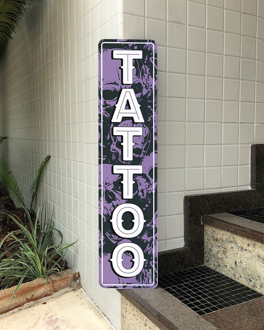 Placa informativa/decorativa inspirada em tipografias de estúdios de tatuagem.
