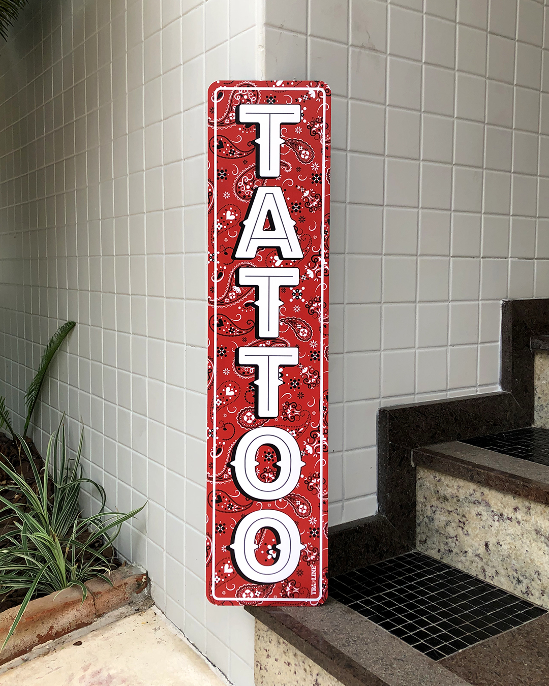 Placa informativa/decorativa inspirada em tipografias de estúdios de tatuagem.