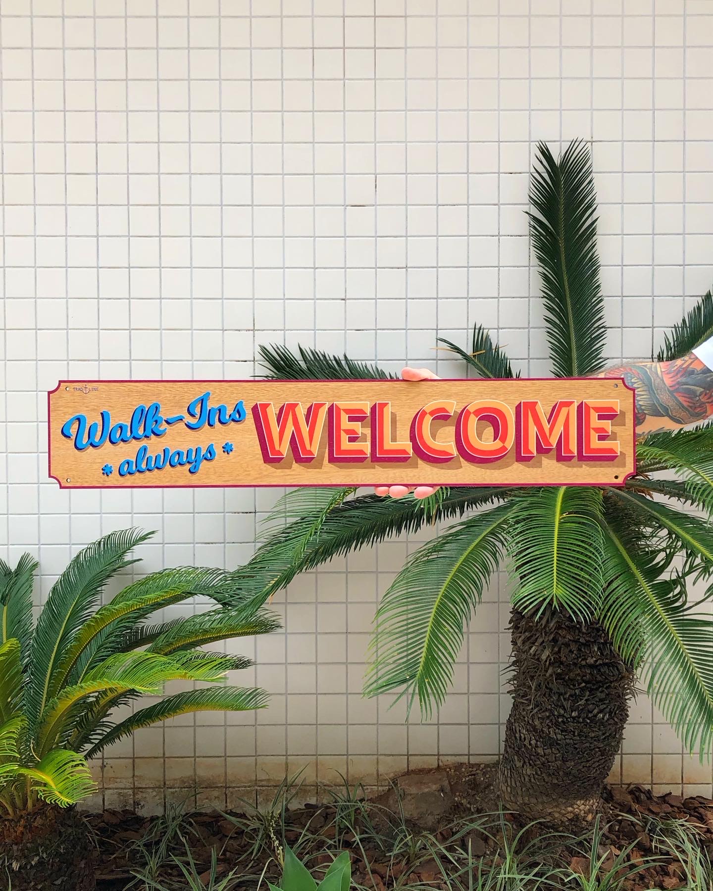 Placa decorativa inspirada em tipografias de estúdios de tatuagem.